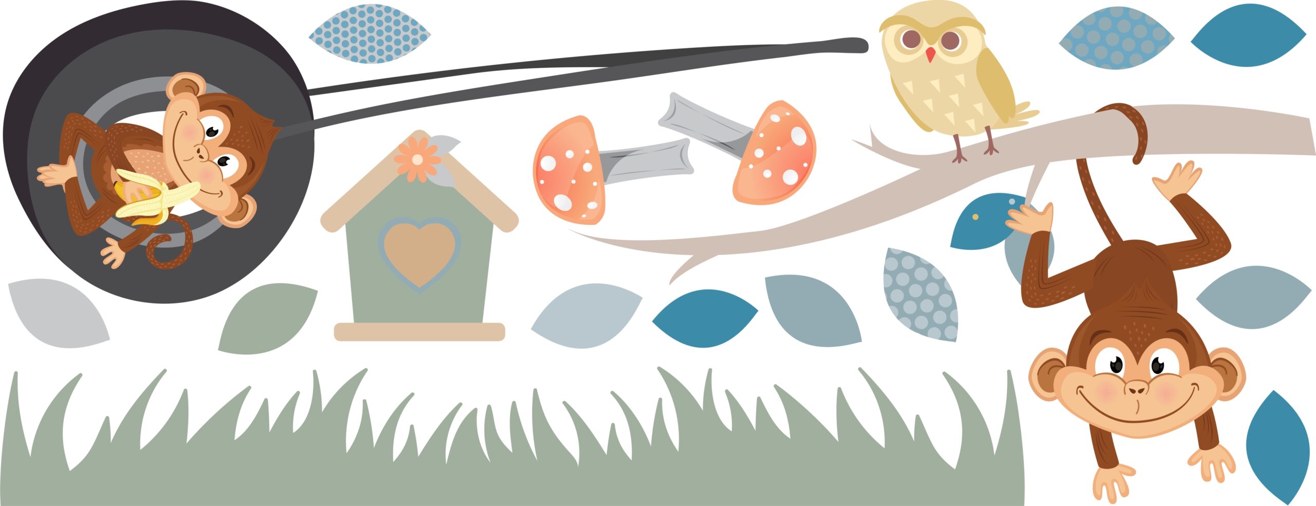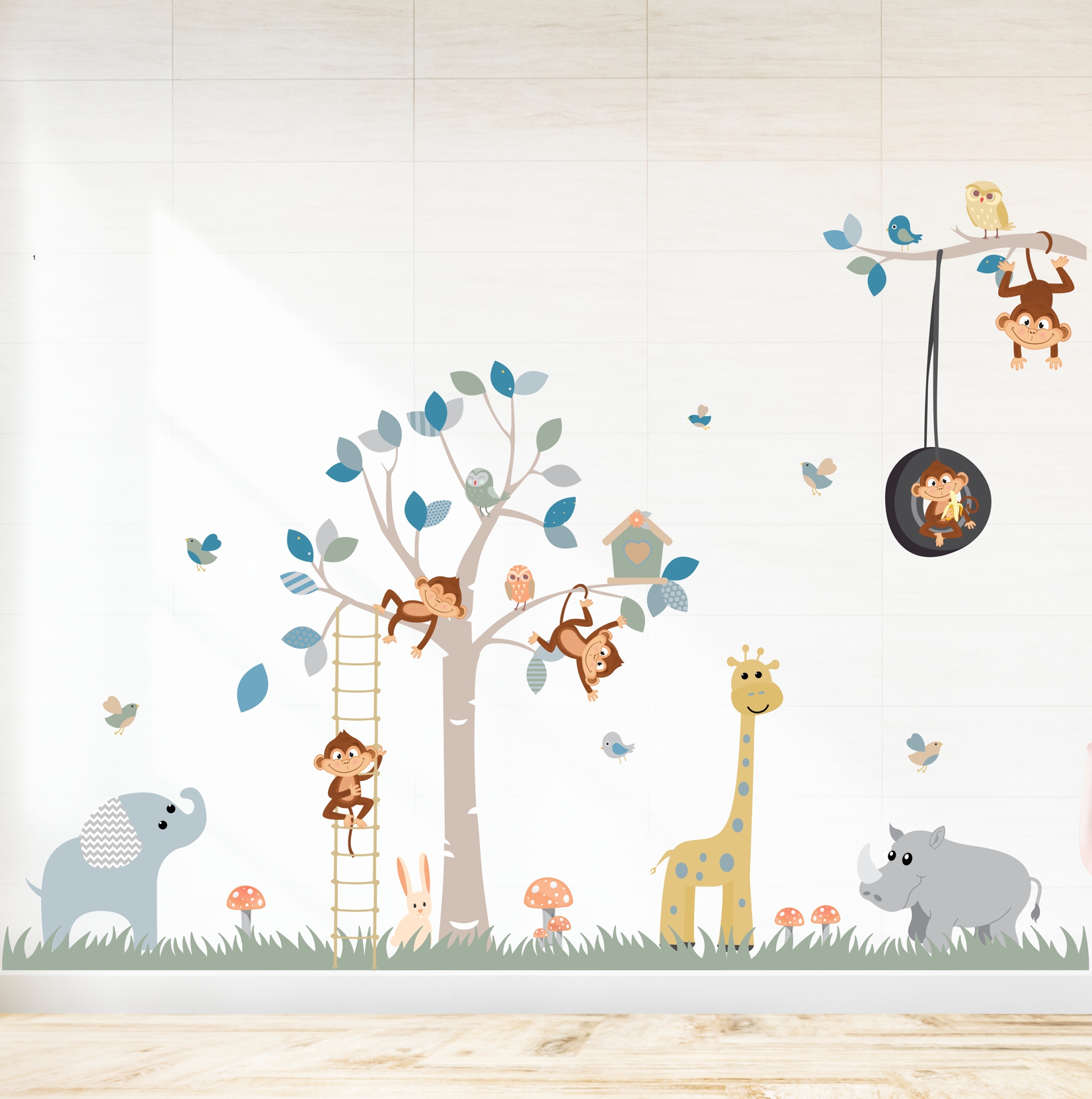 Create an immersive and adventurous atmosphere in your child’s room with our vinyl wall sticker. This incredible design is packed with charming details, from playful animals to a tyre swing, ready to transform your child’s room into a world of imagination and exploration. Here are the key details: